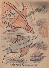 The story in the book is so very hokey that it makes me wonder just who writes coloring books. The names and plot read like something a 6 year old would make up: “Planet Ultima,” “Emperor Supremo.” “The Cosmic Spider Spins a Web Between the Planets.” Books I read to my 3 year old, now days, are more imaginative and make more sense.